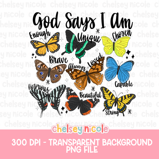 God Says I am Butterfly PNG | Cute Butterfly PNG | Christian Butterfly PNG