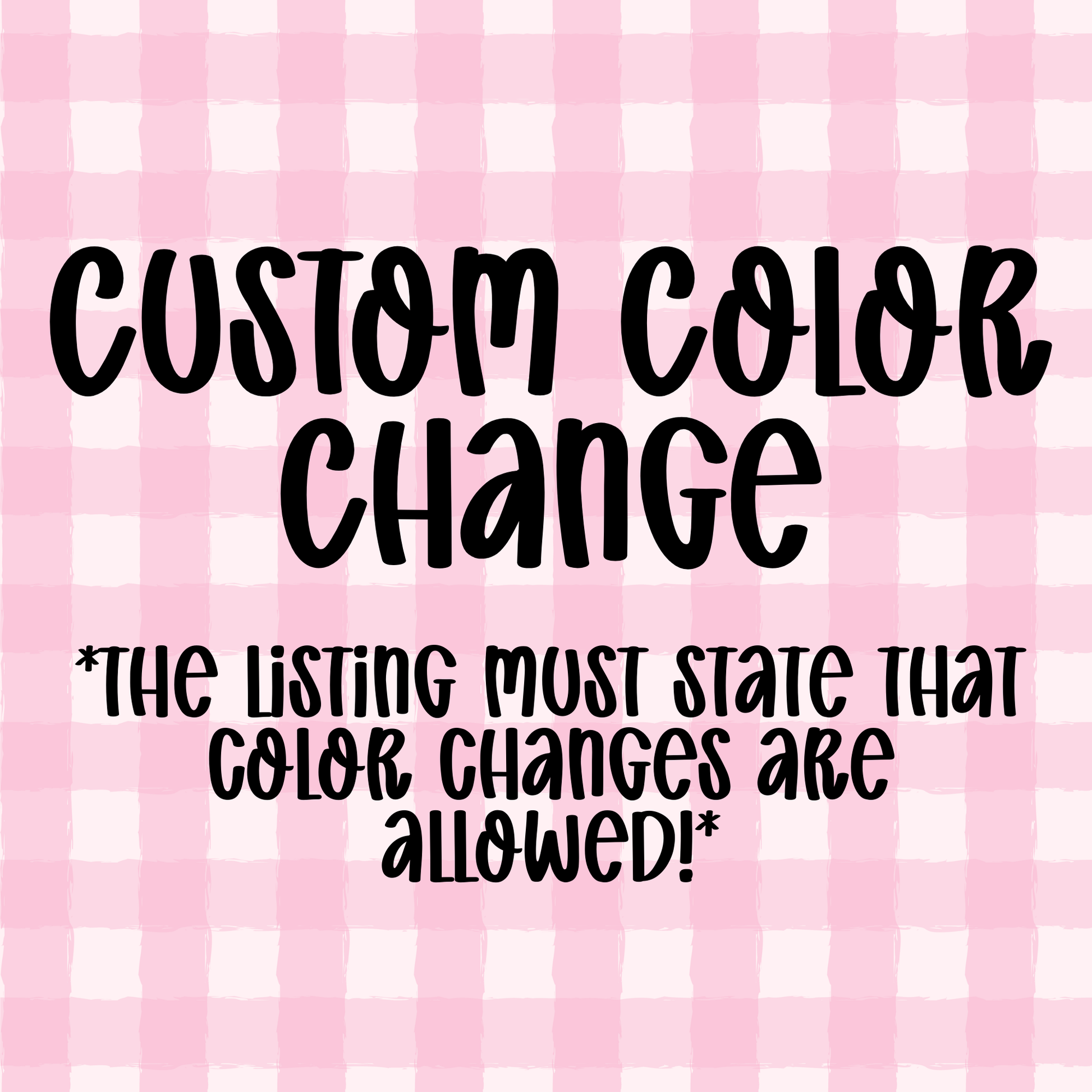Color changes are final and will not be revised once delivered. Please be as specific as possible when submitting your colors. Including exact color names or hex codes is highly recommended.