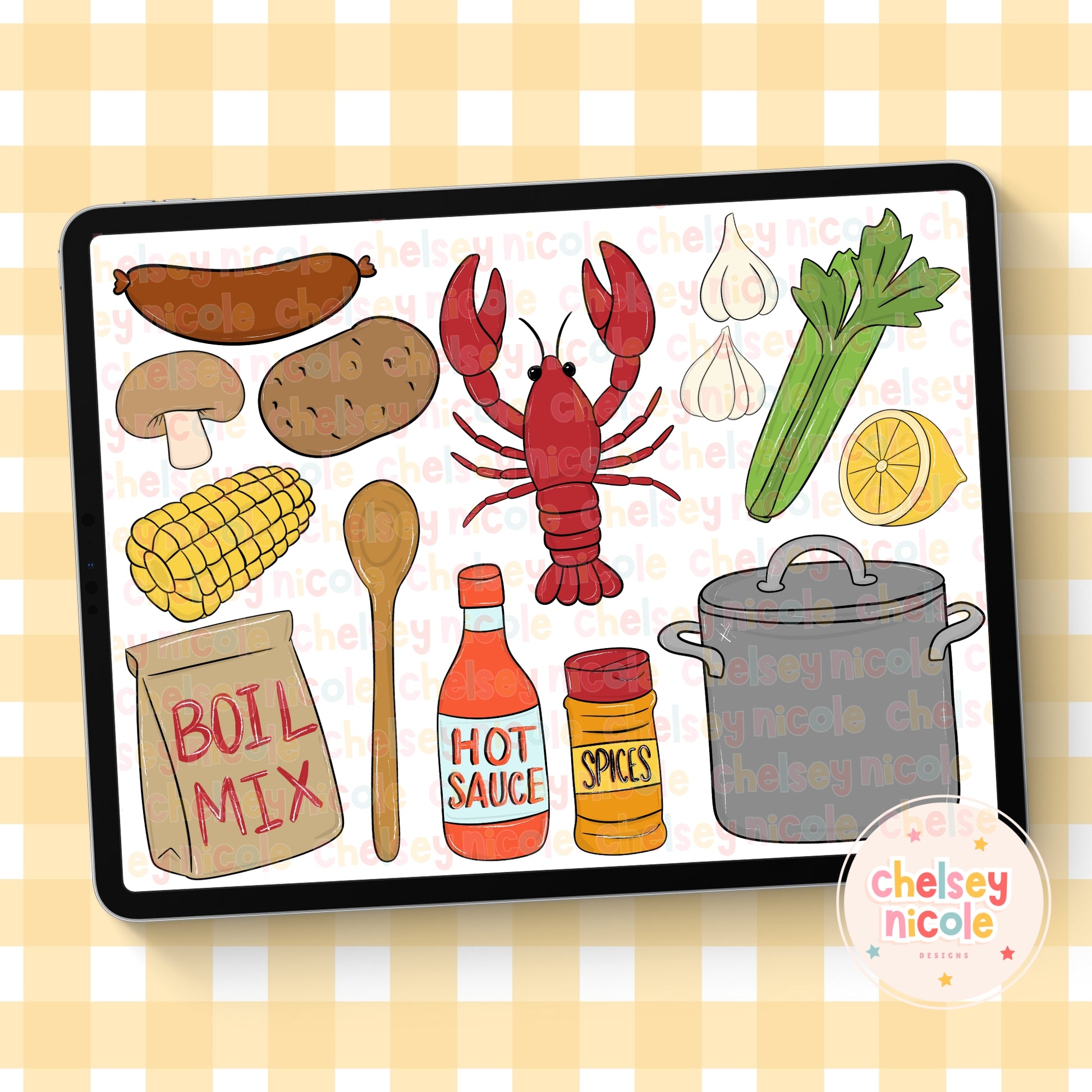 Crawfish Boil Clipart Bundle - Seafood Clipart Bundle - Hand Drawn Clipart