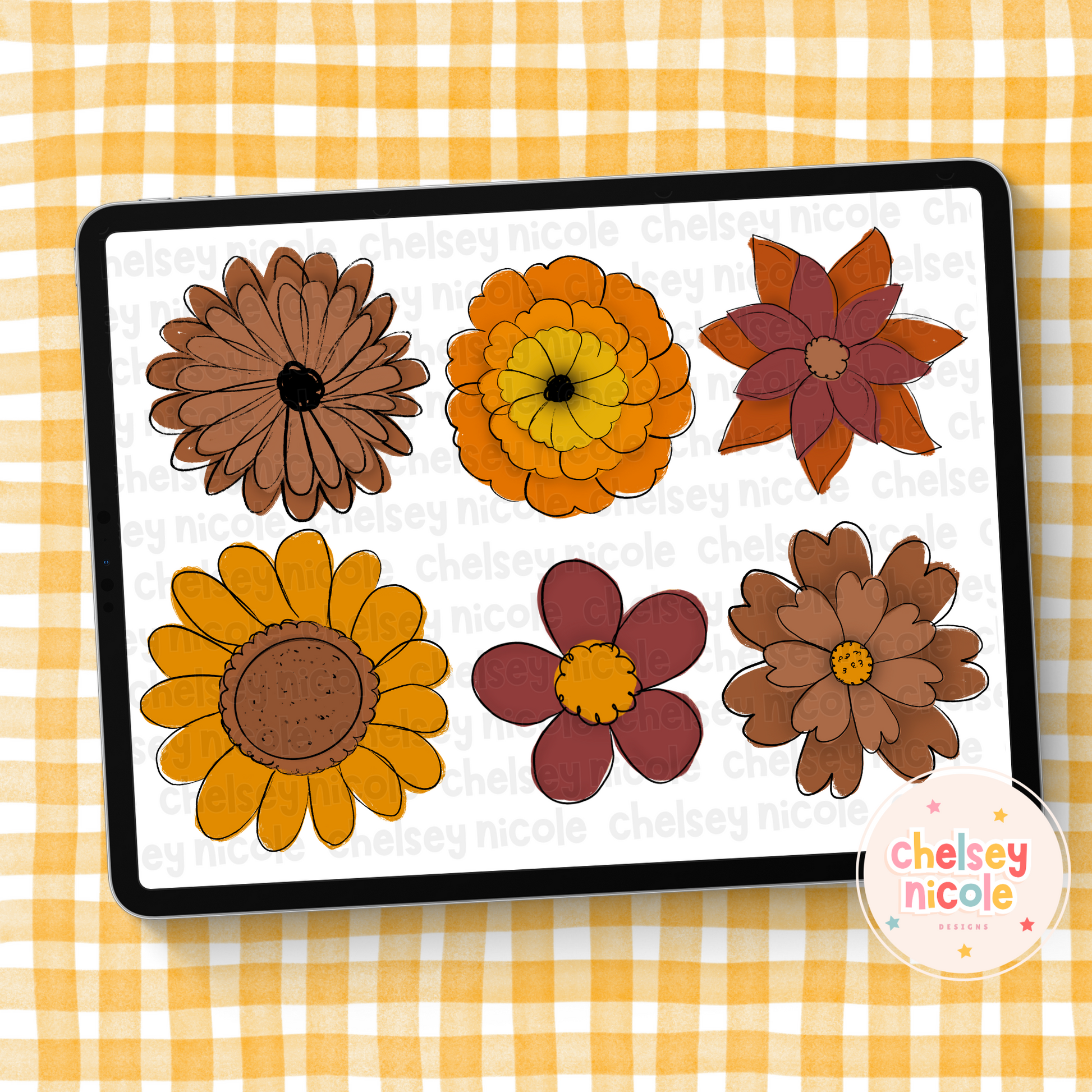 Fall Flowers Clipart | Commercial use Clip art | Fall sunflowers | Autumn Flowers Clipart