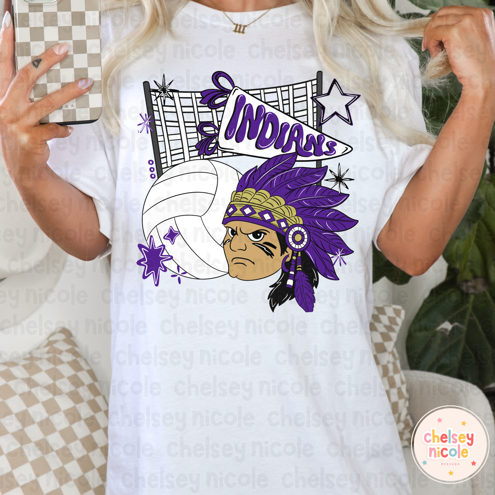Indians Volleyball PNG |Indian Mascot PNG | Hand Drawn Volleyball Digital Design