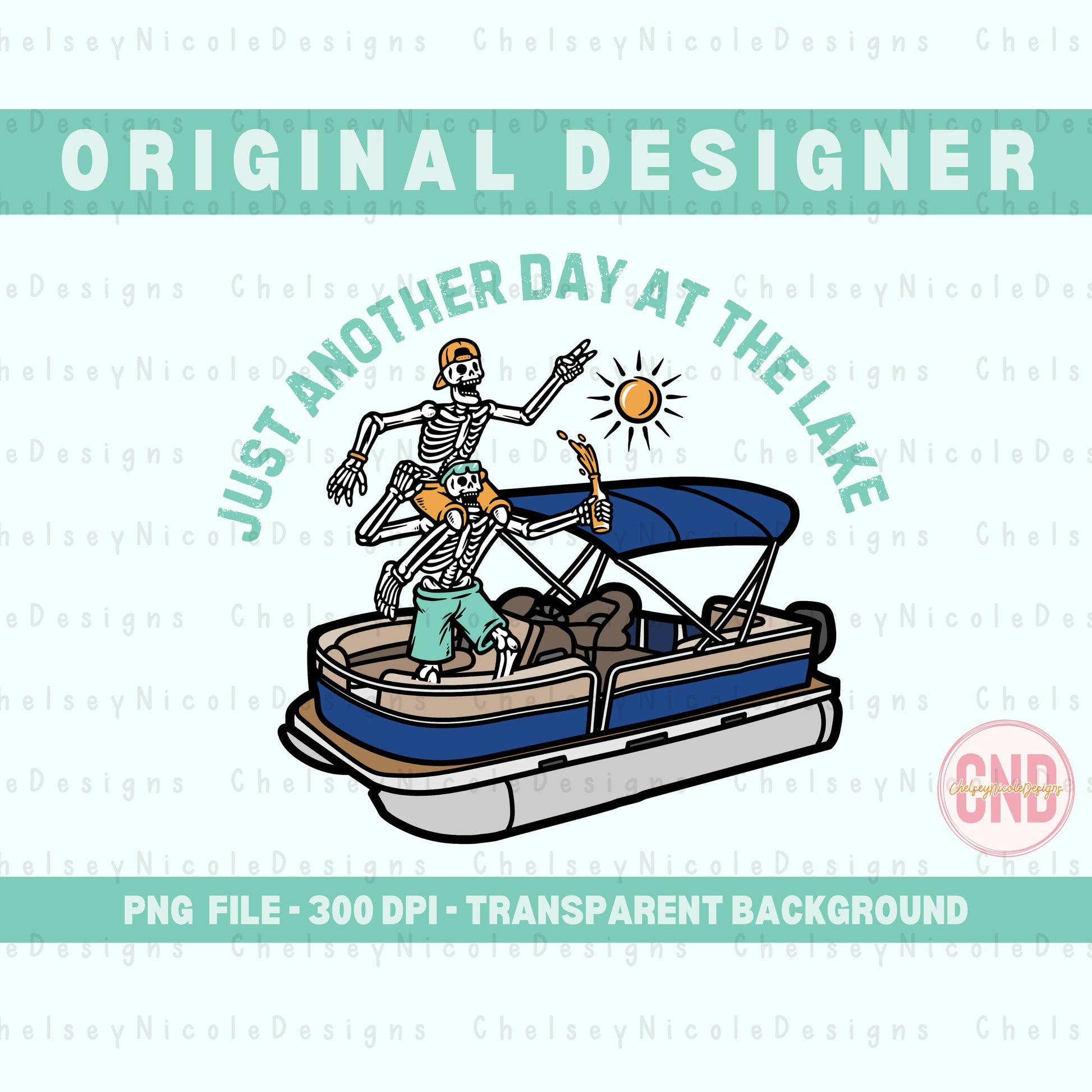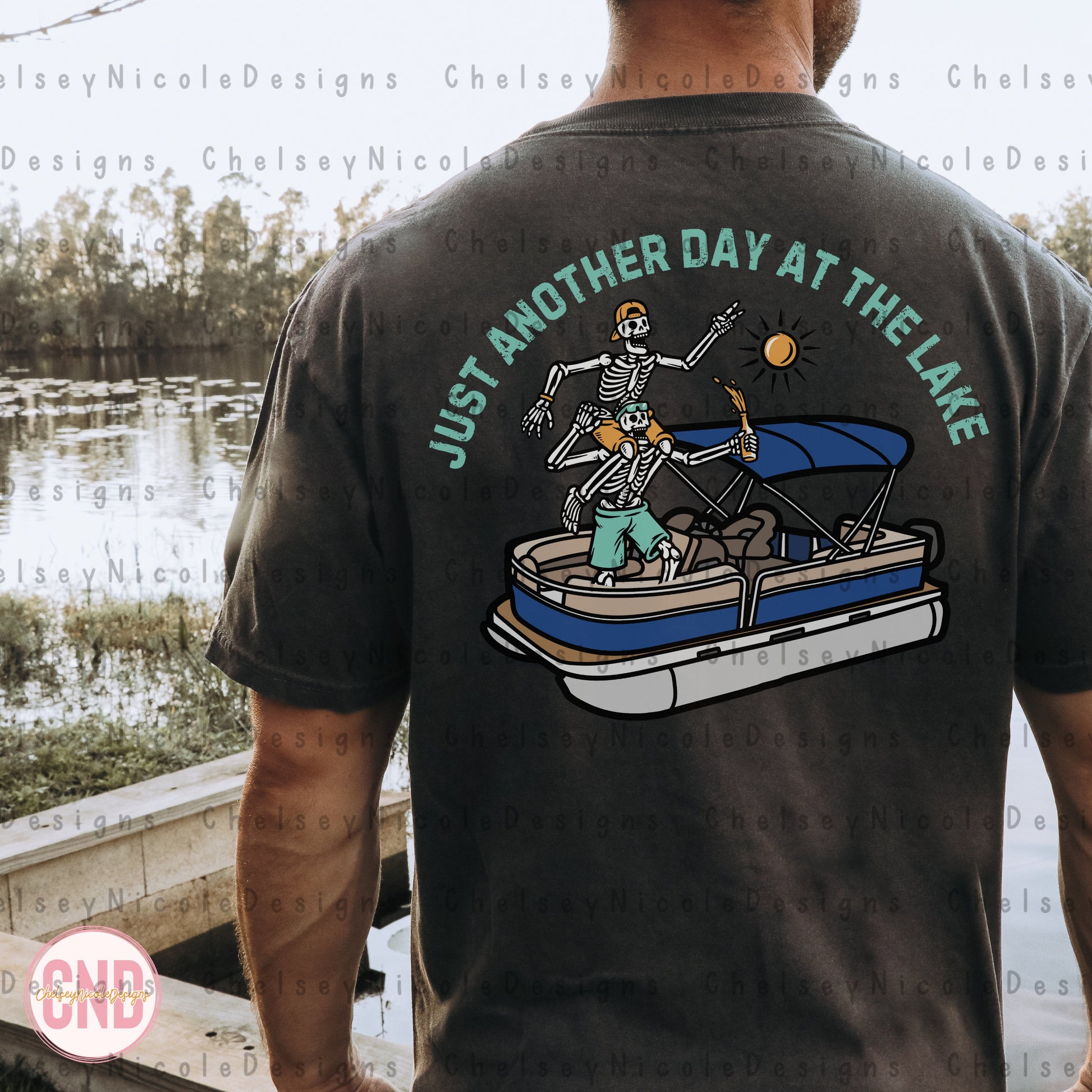 Just Another Day At The Lake PNG | Skull Lake Png | Pontoon png | Funny Lake Design | Retro Lake Days PNG